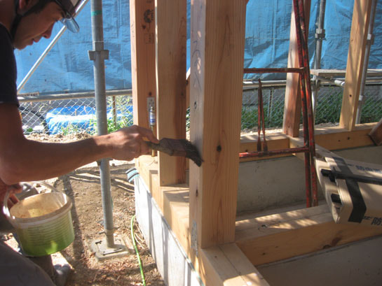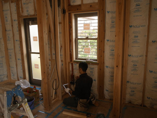 気密テープ貼り