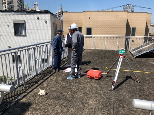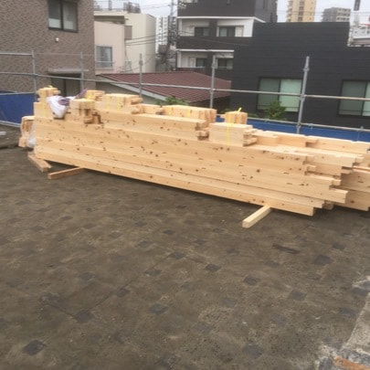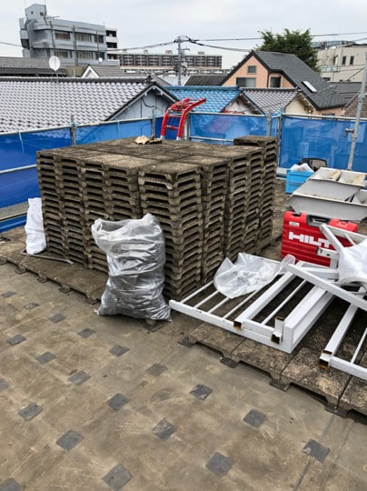 屋根材荷揚げ