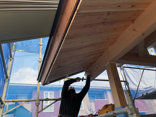 軒天杉板張り