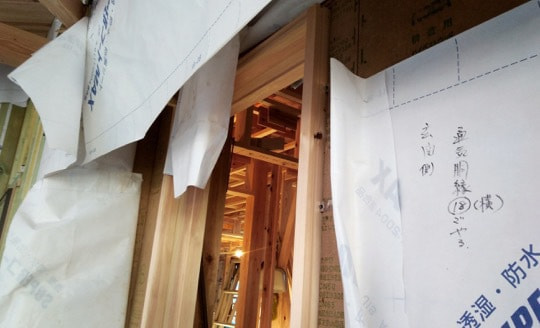 気密テープ貼り