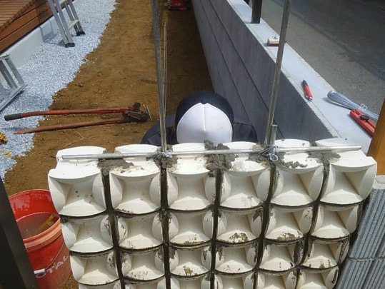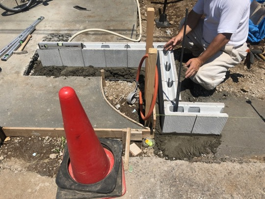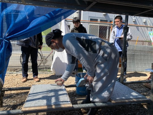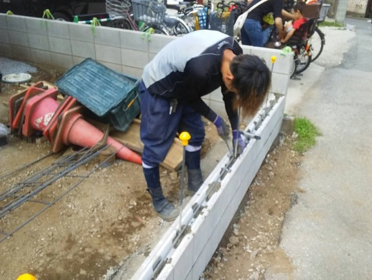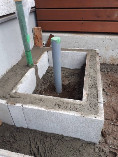 穴あきレンガ施工