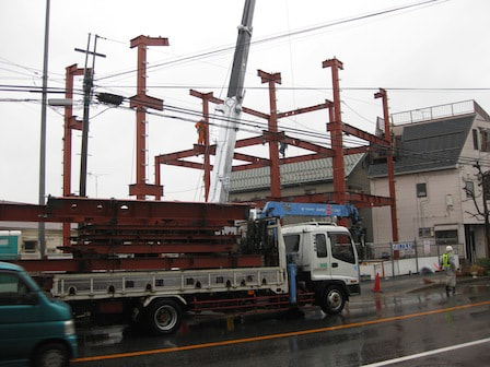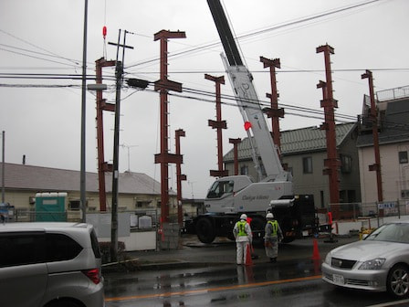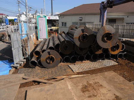 山留め鋼材搬入