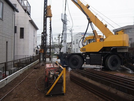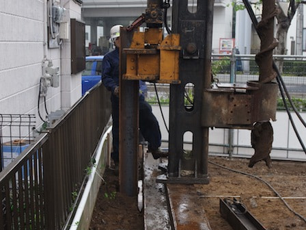 山留めH鋼埋め込み