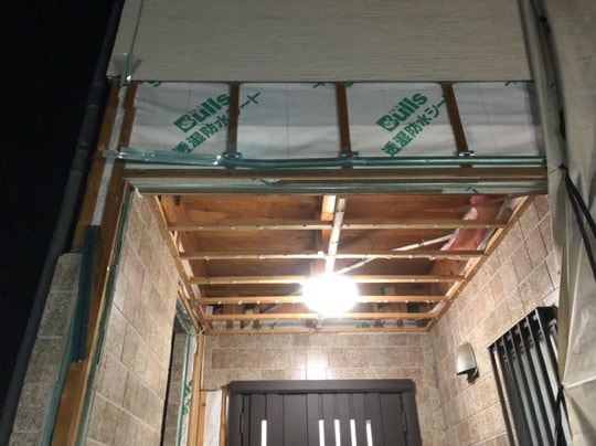 軒天寒冷紗貼り