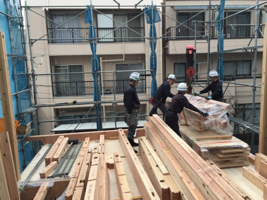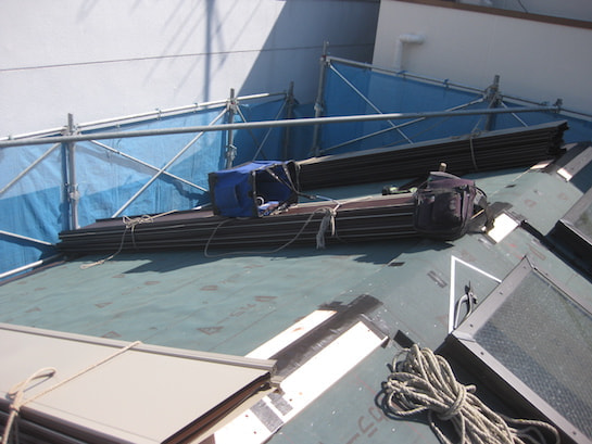 屋根材荷揚げ