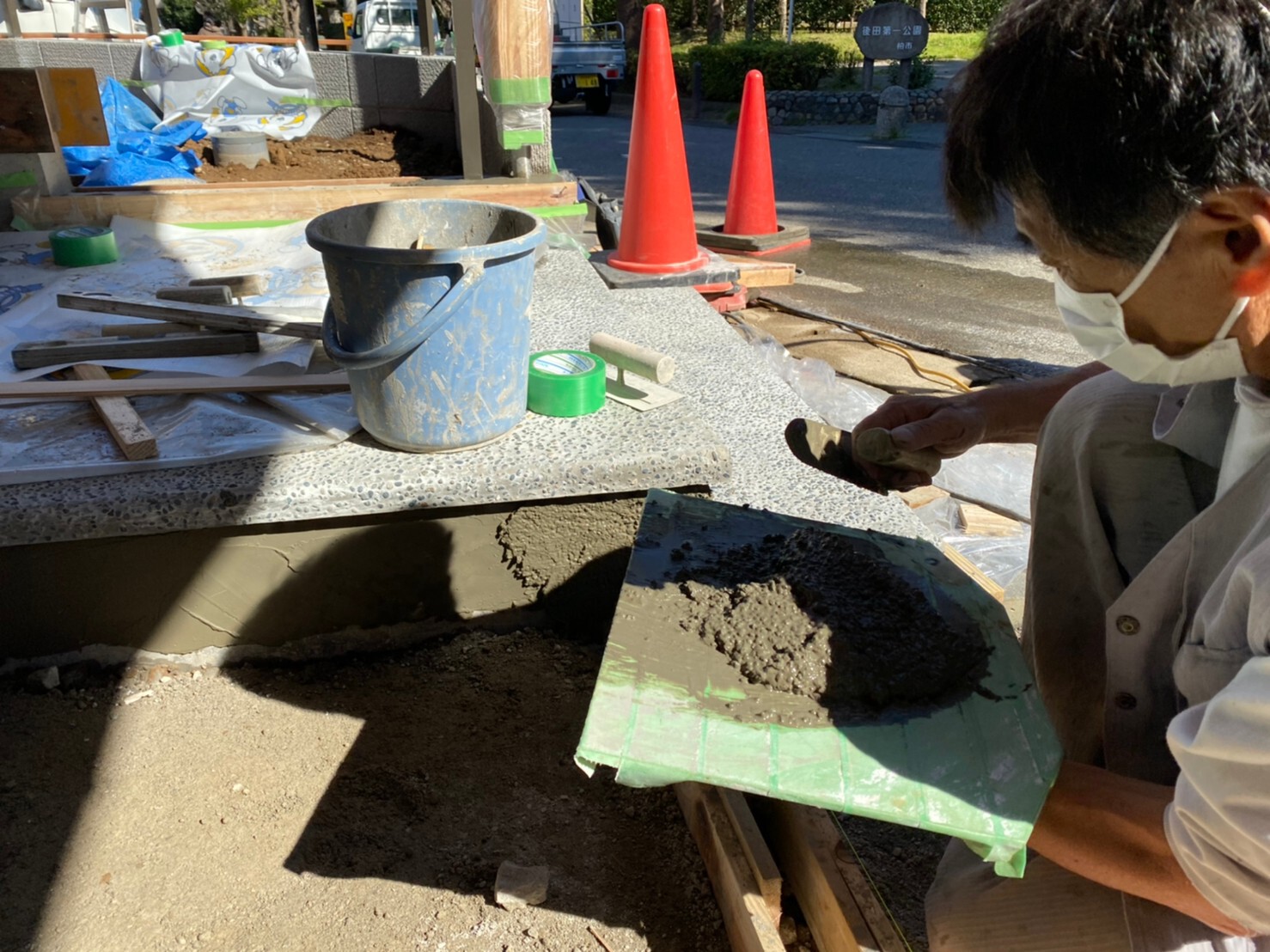 外周泥よけシート敷き