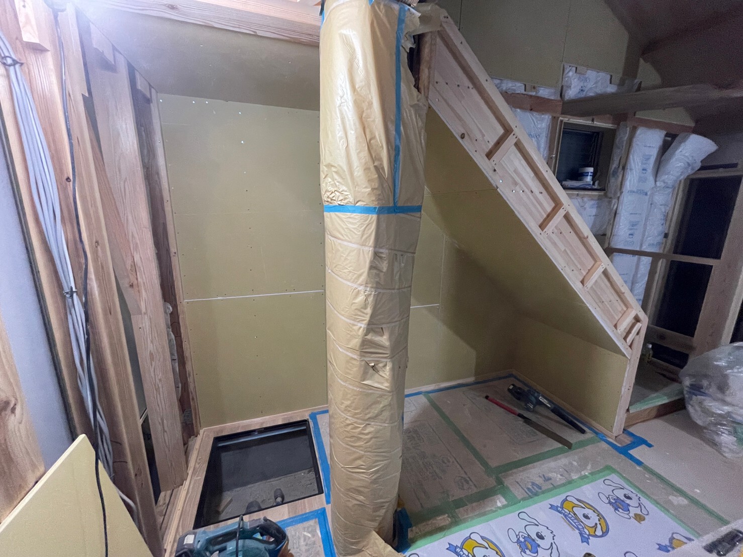 階段下ボード張り