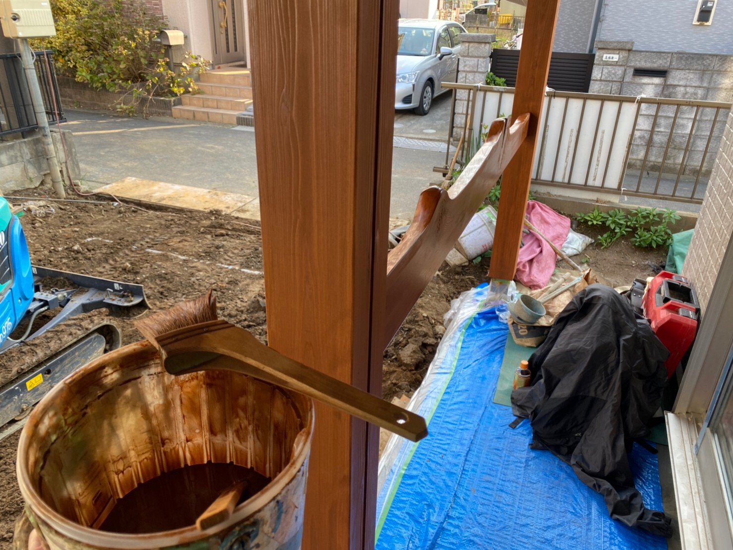 ポーチ柱塗装