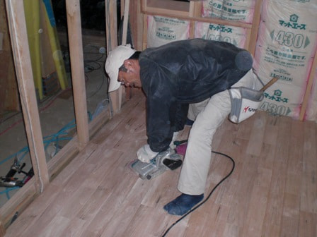 クルミ床板張り