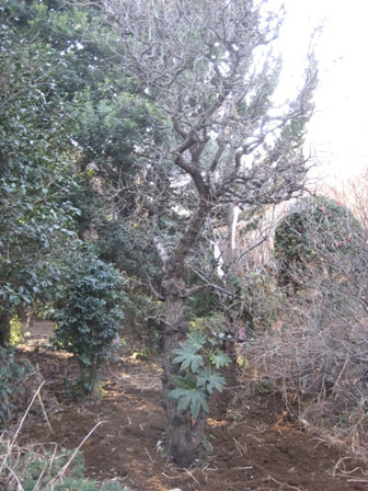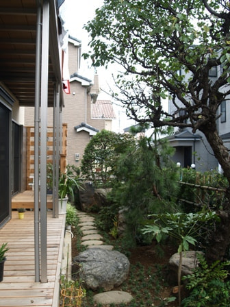 移設した植栽に植木屋さんの