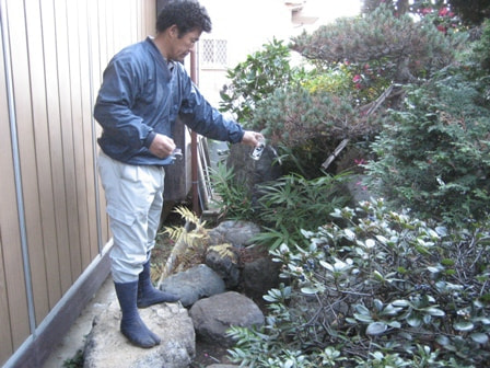 庭石、植栽移設前お清め